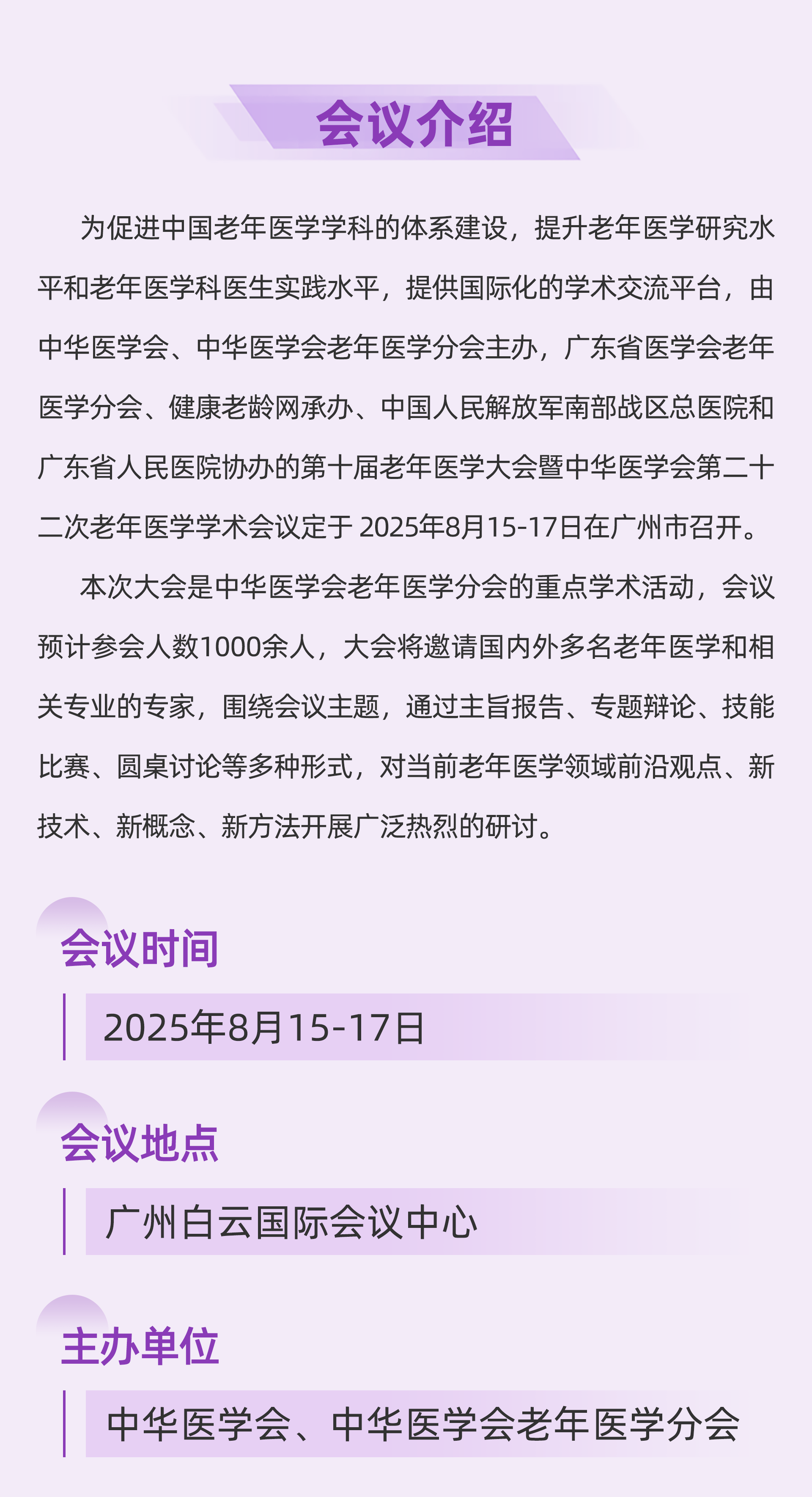 邀您參加中華醫(yī)學(xué)會(huì)第二十二次老年醫(yī)學(xué)學(xué)術(shù)會(huì)議